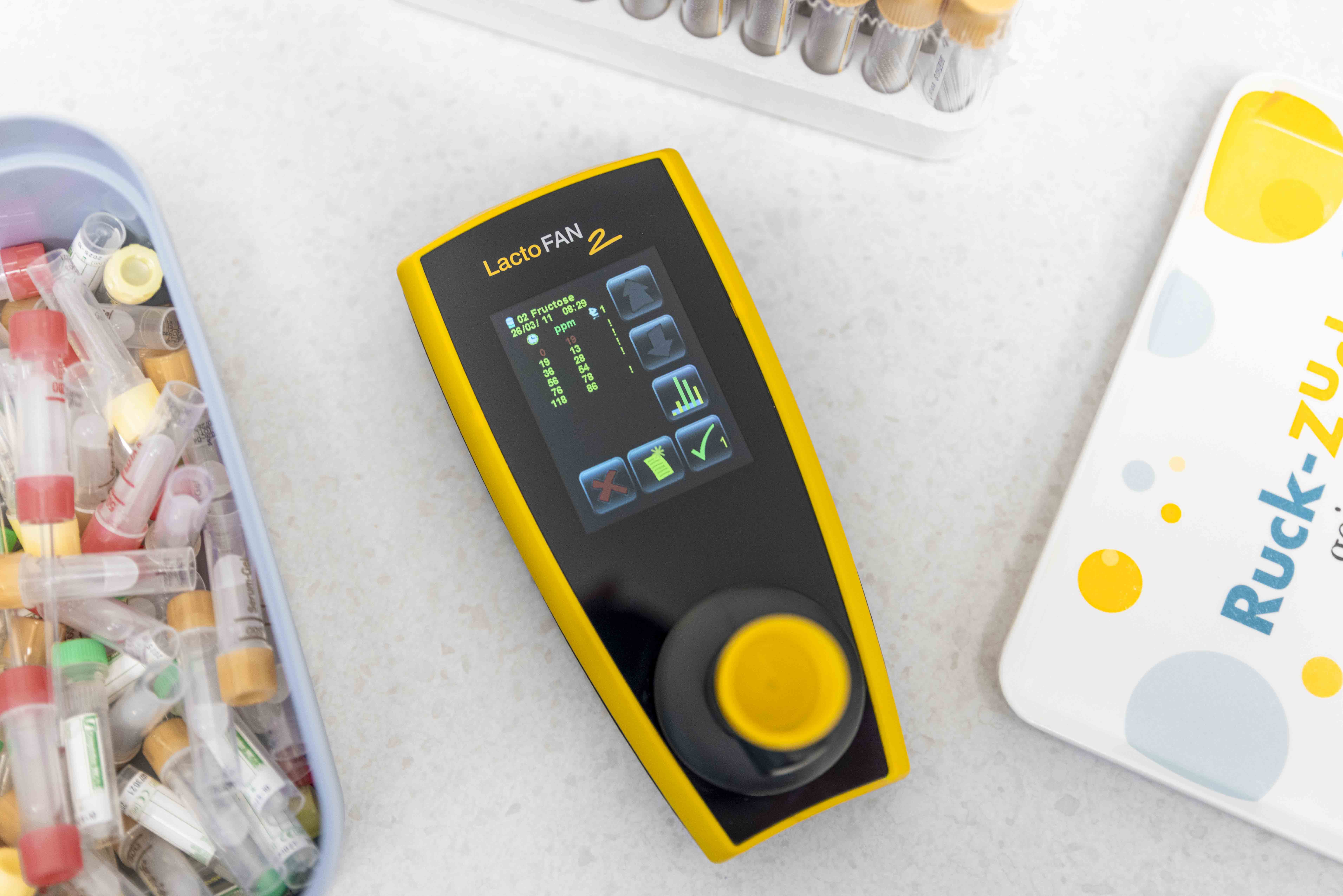 Diagnostik von Zuckerunverträglichkeiten (Fruktose, Laktose, Sorbit) sowie einer möglichen Dünndarmfehlbesiedlung mithilfe des H₂-Atemtests. Absolut schmerzfrei.